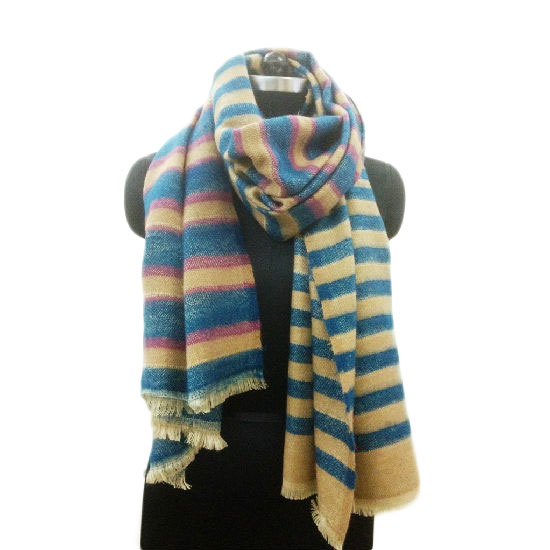 This stylish stole comes with a fashionable and charming design. It is made of 50% viscose and 50% lamb wool to ensure wearing comfort and warmth. This viscose lamb wool stole is designed with delicate striped patterns for an attractive look.