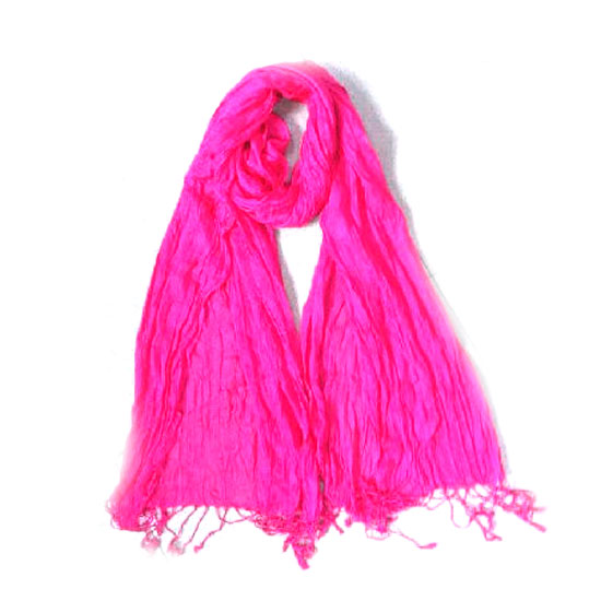 This is a viscose scarf that comes in allover pink for a vibrant look. It is soft and comfortable to the touch. This fashionable scarf pairs with your outfit nicely.