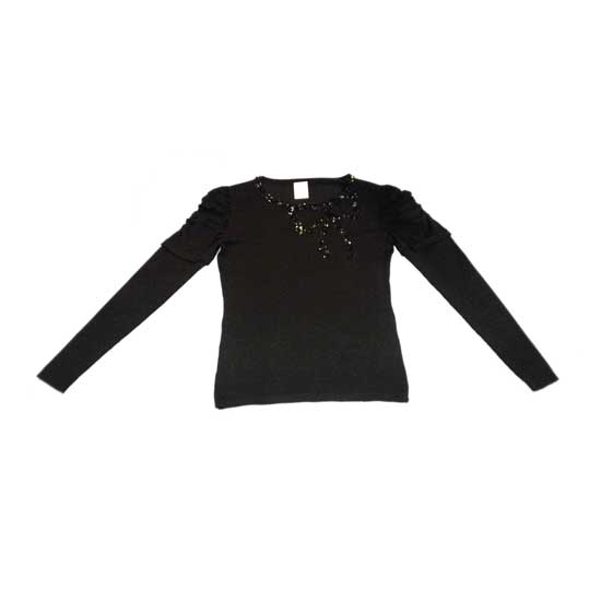 This presented sweater comes in classy black. The neckline and placket are accented with sequins for added glamor. This outlined sweater is made of 72% viscose and 28% nylon, ensuring gratifying wearing comfort.