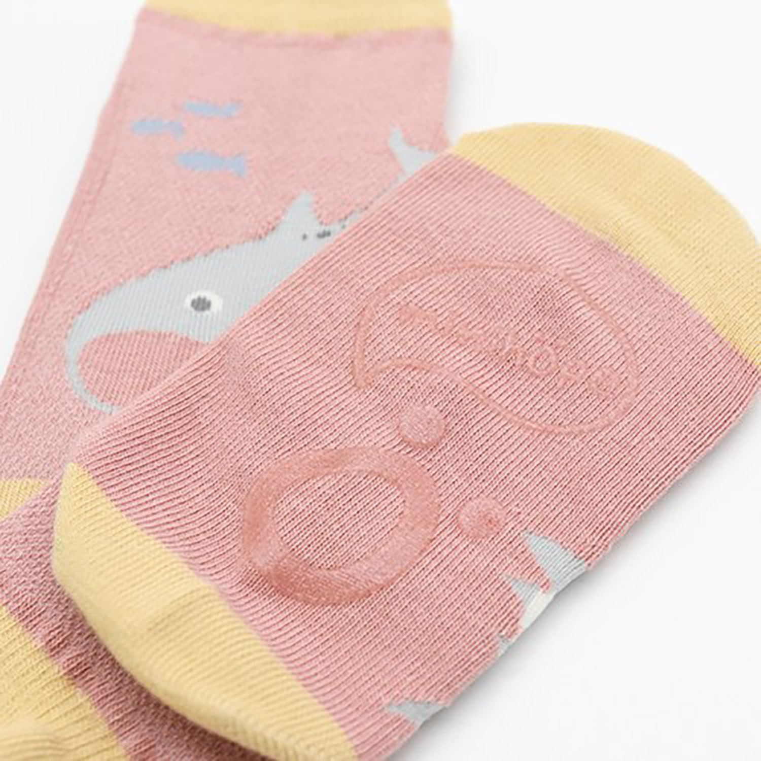 This kid floor sock features a cute and comical design in bright colors. The detailed embellishments effectively attract your consumers. This fancy, soft sock ensures the wearer's comfort and warmth.This pair of socks is made of soft and high-quality that is permanent anti-microbial from bacteria, virus, and fungus.