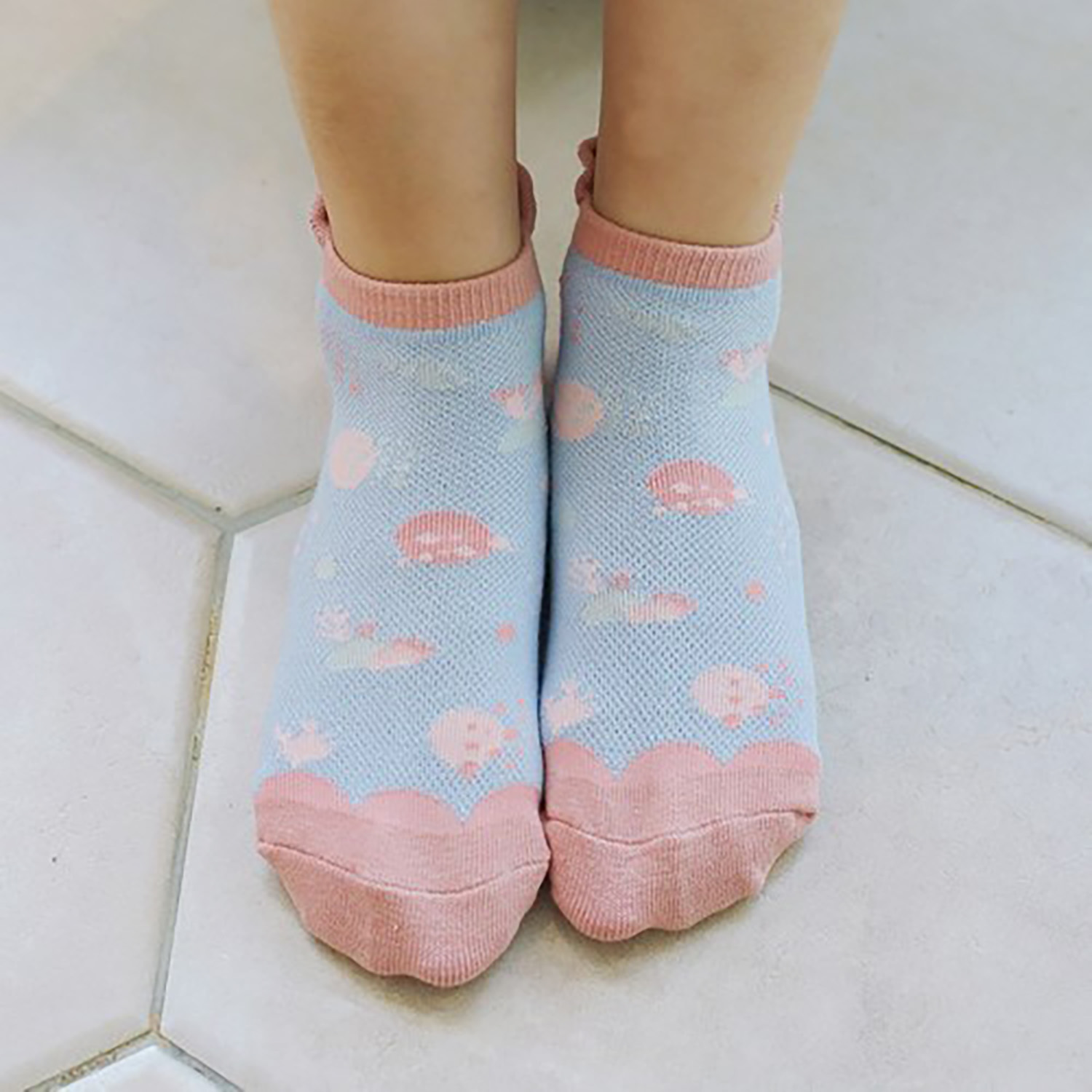 This kid floor sock features a cute and comical design in bright colors. The detailed embellishments effectively attract your consumers. This fancy, soft sock ensures the wearer's comfort and warmth.This pair of socks is made of soft and high-quality that is permanent anti-microbial from bacteria, virus, and fungus.