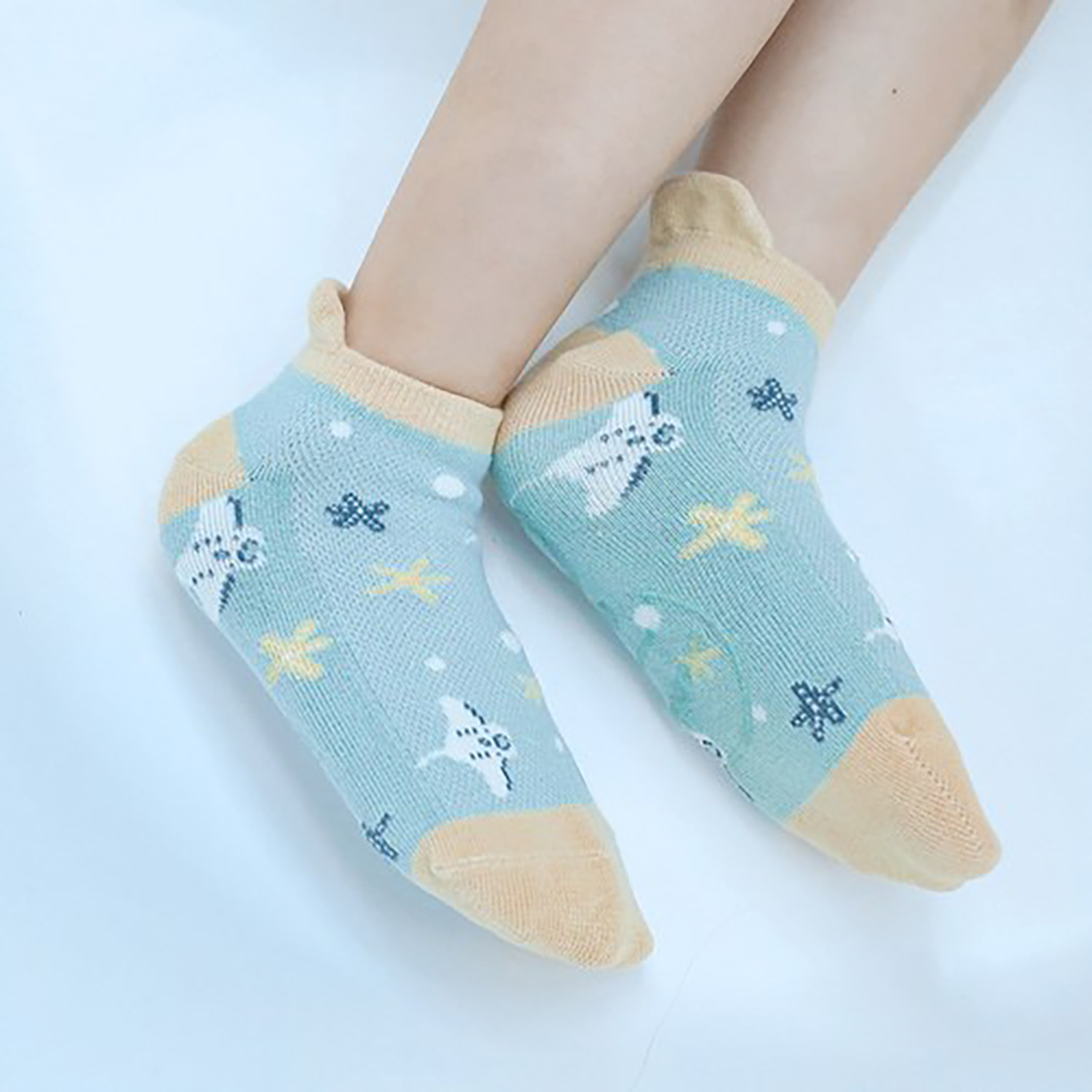 This kid floor sock features a cute and comical design in bright colors. The detailed embellishments effectively attract your consumers. This fancy, soft sock ensures the wearer's comfort and warmth.This pair of socks is made of soft and high-quality that is permanent anti-microbial from bacteria, virus, and fungus.