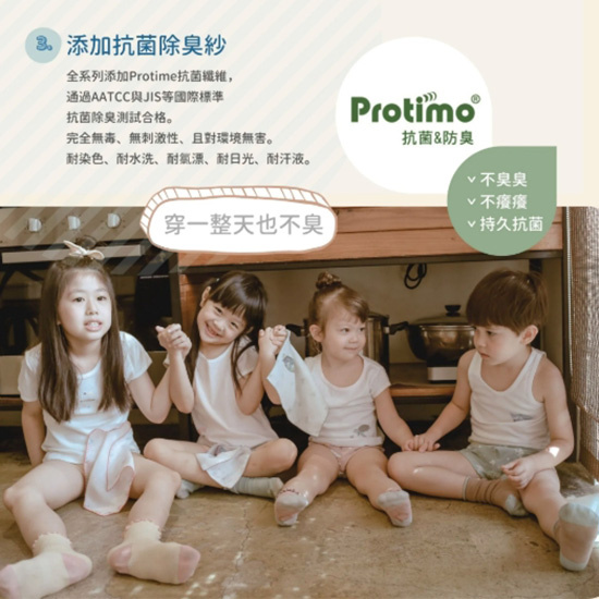Material: 80% combed cotton, 13% nylon, 5% elastane (Protime antibacterial fiber + Lycra® elastane), 2% rubber fiber (Lycra®).