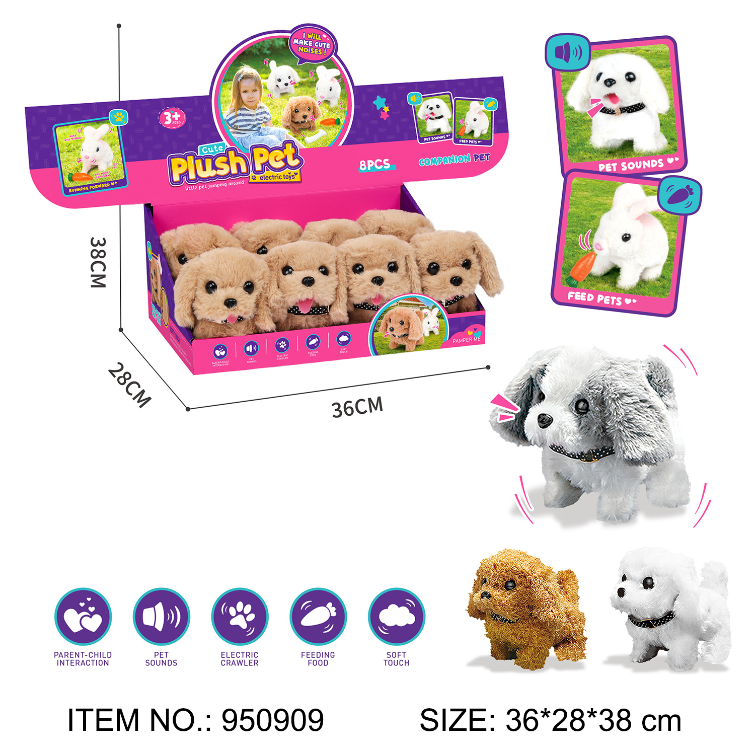 WALKING PLUSH DOG PLAYSET,4ASST.8PCS/DISPLAY BOX(USE 2 PCS AA NOT INCLUDED),TEST REPORTS:EN71 PART1-2-3 AND PHTHALATE TEST.