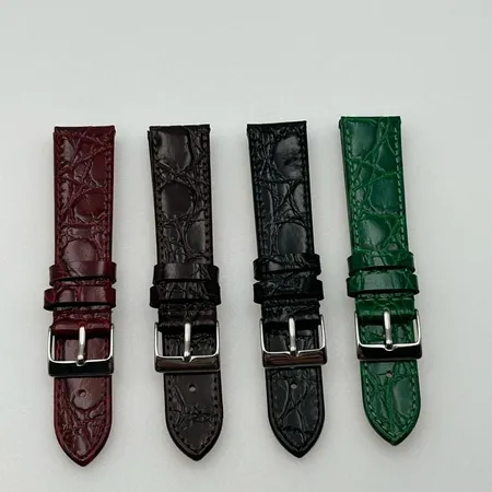 REMBORDED EDGE, POINED END, FLAT, OVAL CROCO GRAIN AS TOP LEATHER, TAN COLOR PLAIN LEATHER AS BACK LINING