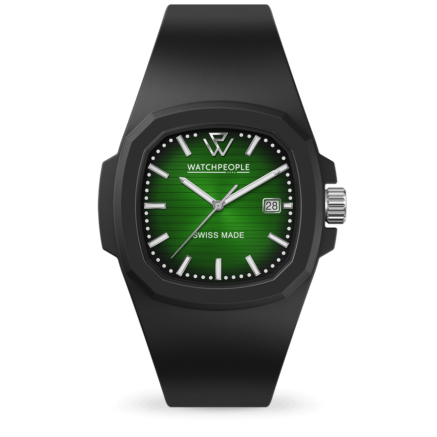 Dazzle with the WP Black Green Radial Lines. It embodies elegance and sophistication with its bold design that defies conventions. Its black silicone bracelet brings a modern and casual touch, while the dark green dial creates a striking contrast. This chic and avant-garde watch is a successful marriage between classic aesthetics and contemporary elements, adding a touch of unique personality to your style. This Swiss Made watch embodies the excellence of Swiss craftsmanship, and its sapphire glass ensures unparalleled protection against scratches, preserving its beauty.