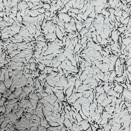 It is a high quality, sophisticated material that combines lightness, practicality and modern style. Breathable and pleasant to the touch, it offers comfort and is suitable for creating unique designs. Heat treatment joins the two layers of the fabric to form a stable relief structure with an expressive patted effect. The front side is complemented by a light black chaotic coloration, which emphasizes the drape and visually enhances the relief of the fabric. This material is ideal for creating garments, accessories and decorative elements that stand out for their texture and dynamic design.
