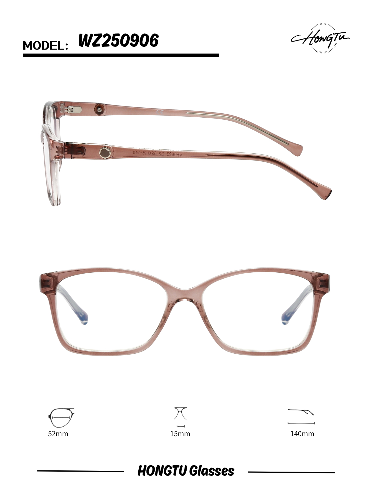 The HONGTU WZ250906 presents a unique dimensional balance with its 52mm lenses and 140mm temples. This compact frame design, offered in two color choices, provides a distinctive fit option for those seeking fashion-forward proportions with comfortable wearability.