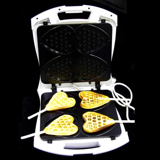 This waffle maker comes with easy-to-control handles. The heart-shape waffle is unique and alluring. This household electrical appliance allows sticks to be inserted when making waffles for added convenience.