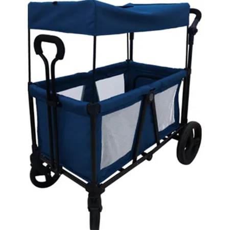 lEASY TO DRIVE: The wagon has 2 adjustable leatherette handlebars so you can push or pull; Swivel front wheels for easy turning; One-step on/off parking brake; 12” back wheels, 7.5” front wheels