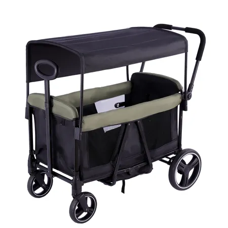 2 WAYS TO RIDE:Stroller Mode: Use two 5-point safety harness seats for older kids; Wagon Mode: Haul all your gear to any activity; Compact fold and auto lock latch for easy transport/storage