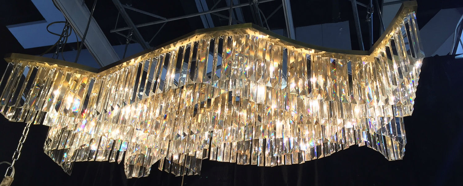 • 19 lights bulb hanging with triangle glass ,it can been making with chrome, gold, brass, nickel colors. sizes can been tailor make