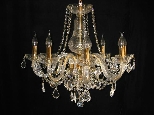 Chandelier in 8 lights with Asfour crystal, it can matching with family series, floor, table, wall. The finishing can been in gold, chrome, satin, red, black, France gold colors. Sizes can been tailor make.