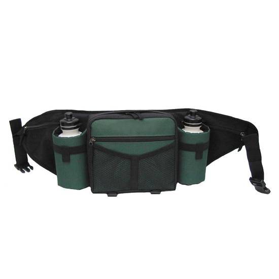 This portable waist bag features a zippered main compartment, zippered pocket and mesh pocket up front. The polyester waist bag has 2 water bottle pockets on sides and buckled waist strap with zippered pockets making it perfectly suitable for any traveller.
