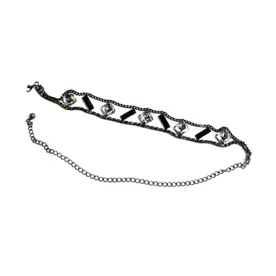 Displayed is a waist chain with sparkling stones as embellishment. Made of high quality iron, this waist chain is durable with a natural draped effect. This fashionable waist chain is an ideal fashion accessory to consider on a daily basis.