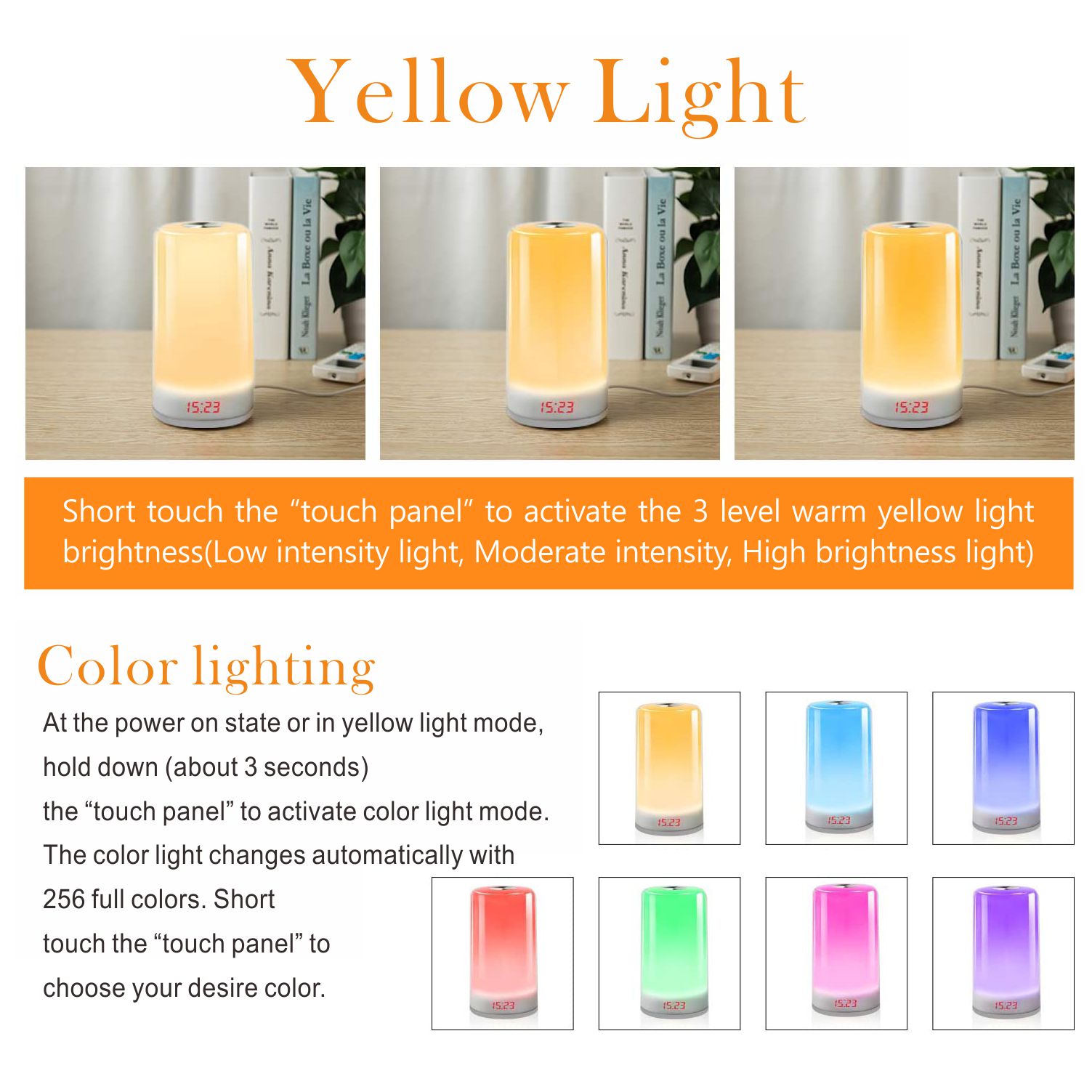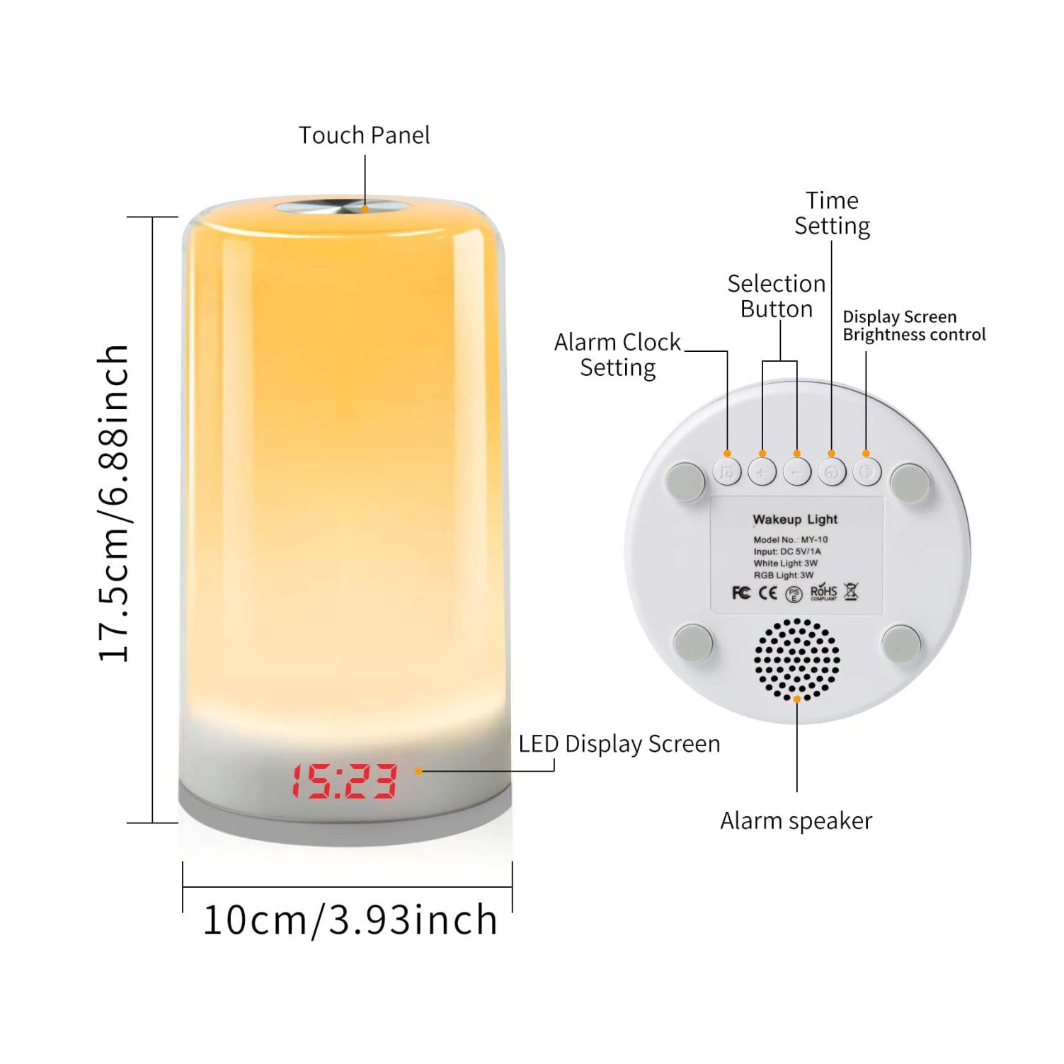 Unique Design : Wake up lights, the fashion cylindrical appearance make the light more even,avoid dazzling ,which combine with the sunrise function and the natural alarm sounds,make you have a comfortable wake up time. The product can be connected to the USB port on your computer, laptop, power bank, etc.