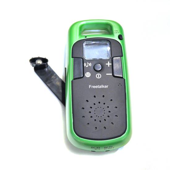 As shown is a walkie-talkie as well as a cell phone charger. Being compact and lightweight, this walkie-talkie can be carried by hand, in pockets, handbags or backpacks easily. This walkie-talkie is best for outdoor use.