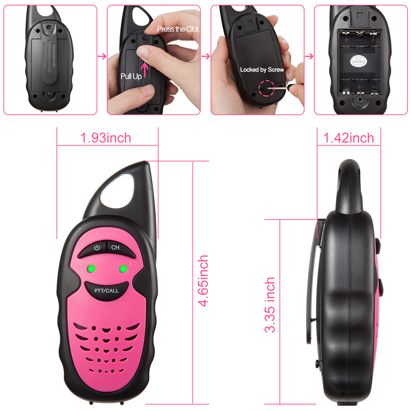 Using with 3* AAA Alkaline batteries each walkie talkie(not included)