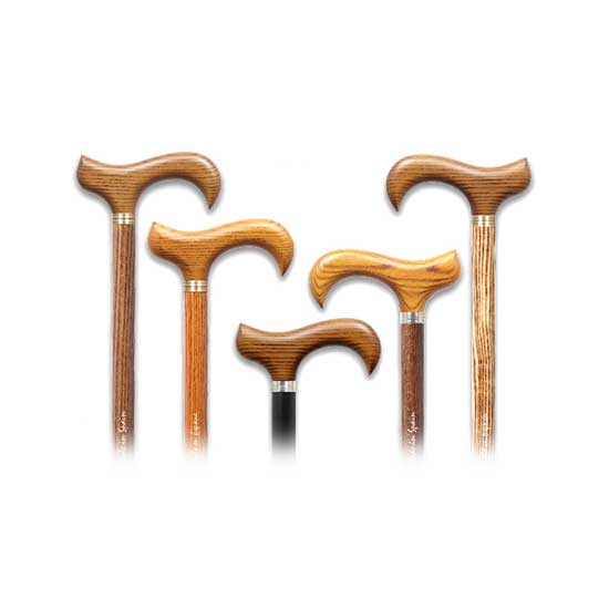 This is a collection of walking sticks that comes in assorted sizes. Featuring wooden patterns, these walking sticks showcase a classy style. The handles are designed in a curved style for comfortable and firm holding.