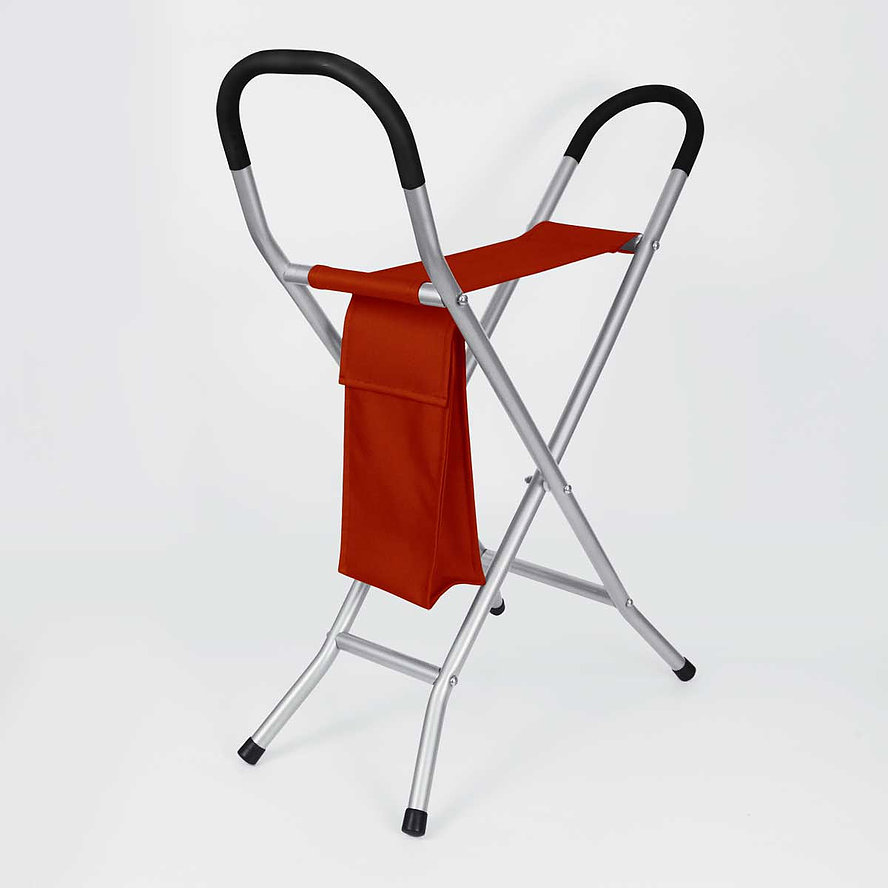 - Combination of folding chair and walking stick.