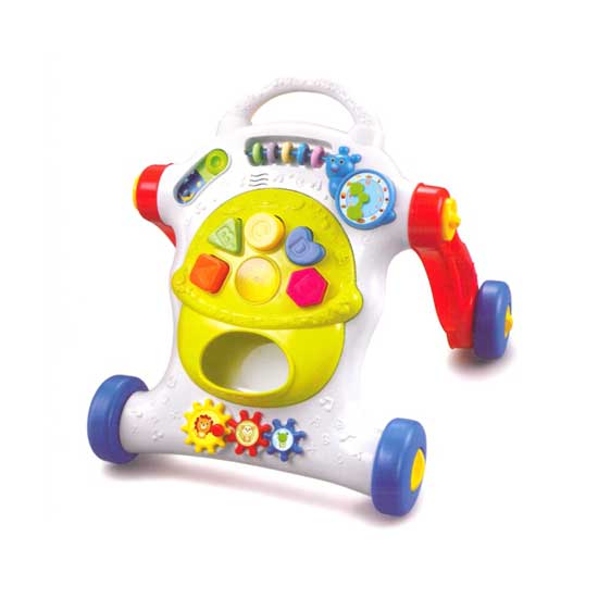 This is a baby toy that aids with babies' learning of walking. This toy also helps babies to learn simple English words, colors and the form of different shapes. This walking toy encourages babies to walk more and offers them support when they learn to walk.