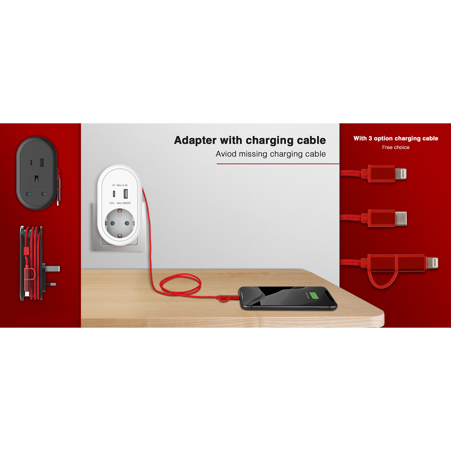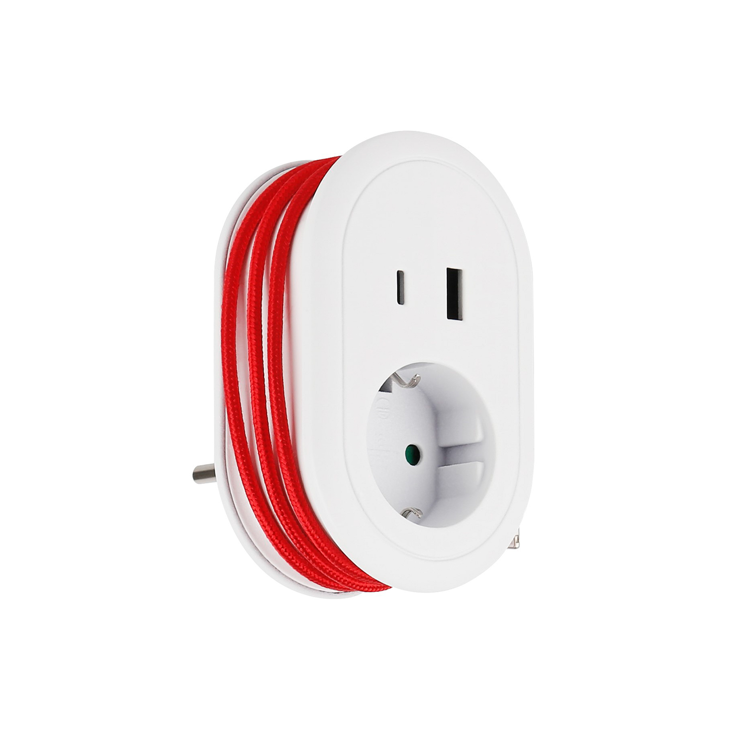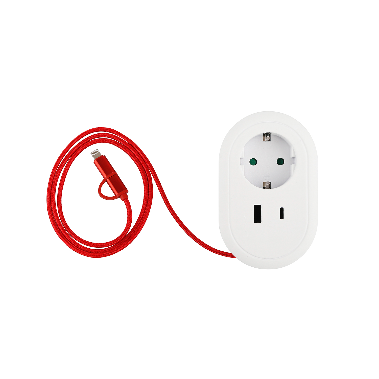 This practical Wall Charger features an integrated cable spool that wraps neatly around its oblong housing, keeping cords secure, tidy, and ready for use. Its stowable design makes it easy to pack, while the included suction plate ensures a firm grip on tabletops or desks for added convenience and stability.