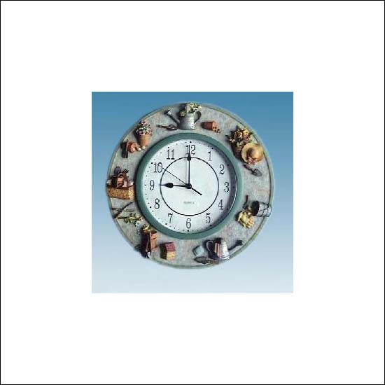 • This stylish wall mounted clock is raised decorated by cute garden tools