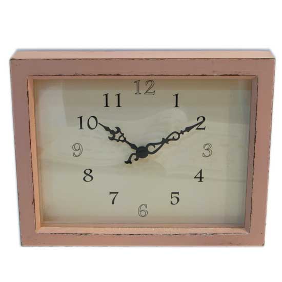 This wall clock comes with a pink rectangular frame. The dial is designed in western style with delicate clock hands. The simple yet elegant design makes it a great choice for household use.