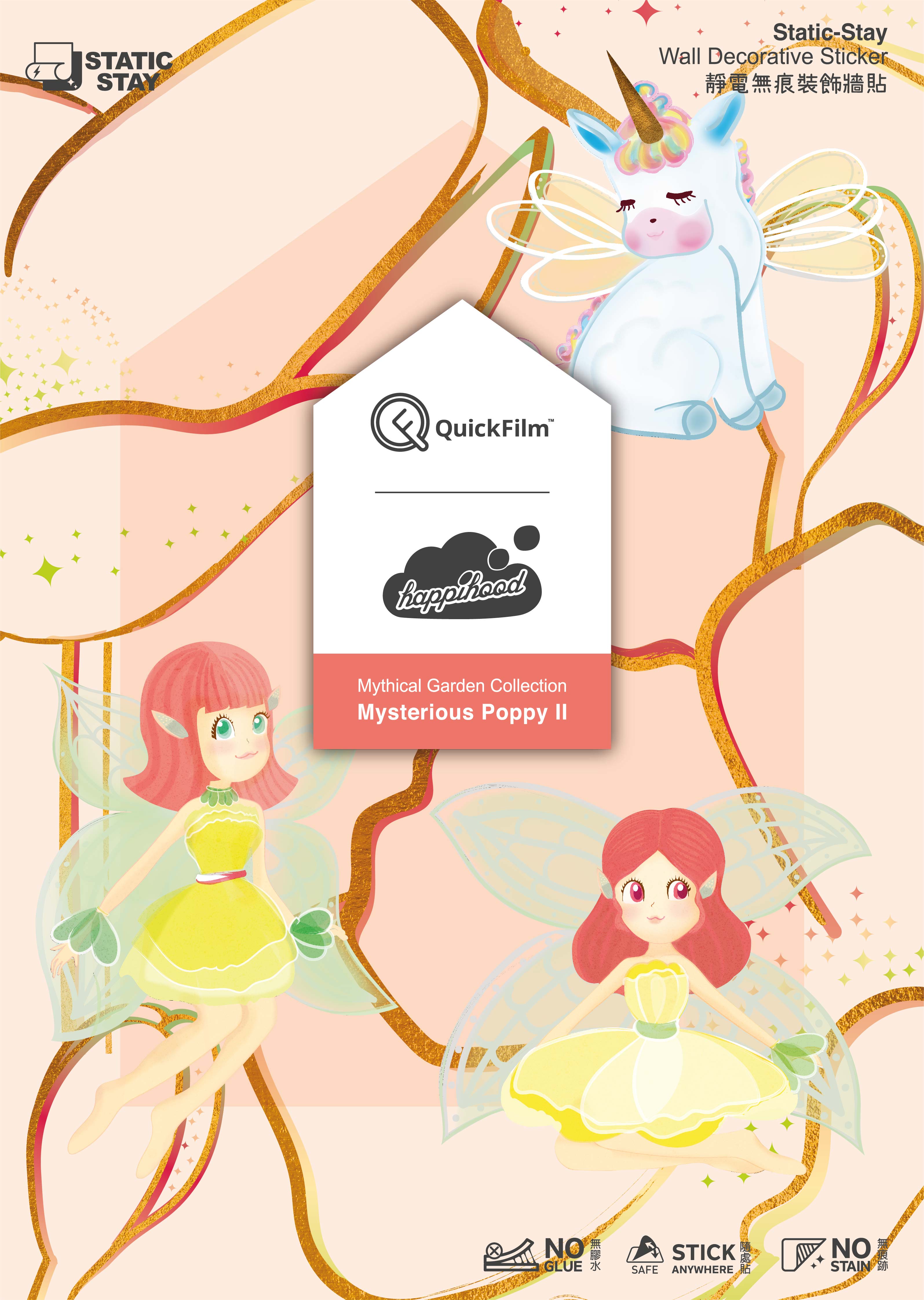 QuickFilm™ Static-StayCollection does not contain glue, can be moved easily, leaves no trace behind. It can be adhered to any smooth surface such as walls (including painted walls), wood, fridge, glass, etc. With these static-stay wall stickers on the wall, a mythical garden magically emerges. The flowers are so appealing that invite fairies and legendary creature.