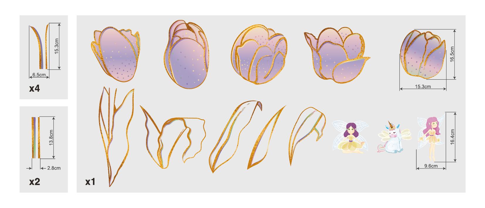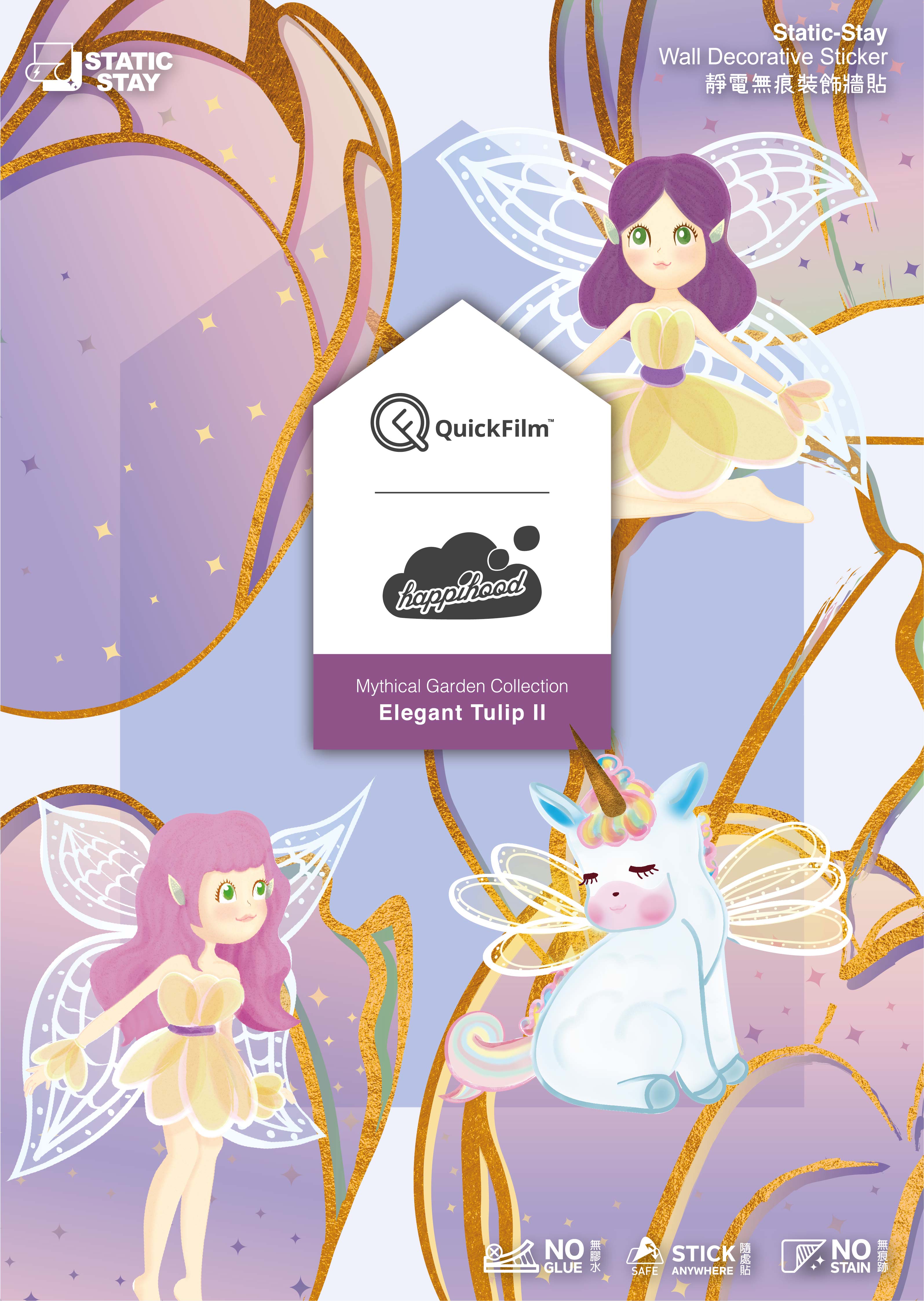 QuickFilm™ Static-StayCollection does not contain glue, can be moved easily, leaves no trace behind. It can be adhered to any smooth surface such as walls (including painted walls), wood, fridge, glass, etc. With these static-stay wall stickers on the wall, a mythical garden magically emerges. The flowers are so appealing that invite fairies and legendary creature.