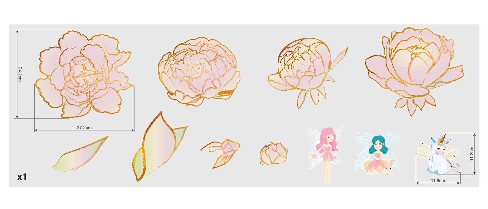 QuickFilm™ Static-StayCollection does not contain glue, can be moved easily, leaves no trace behind. It can be adhered to any smooth surface such as walls (including painted walls), wood, fridge, glass, etc. With these static-stay wall stickers on the wall, a mythical garden magically emerges. The flowers are so appealing that invite fairies and legendary creature.