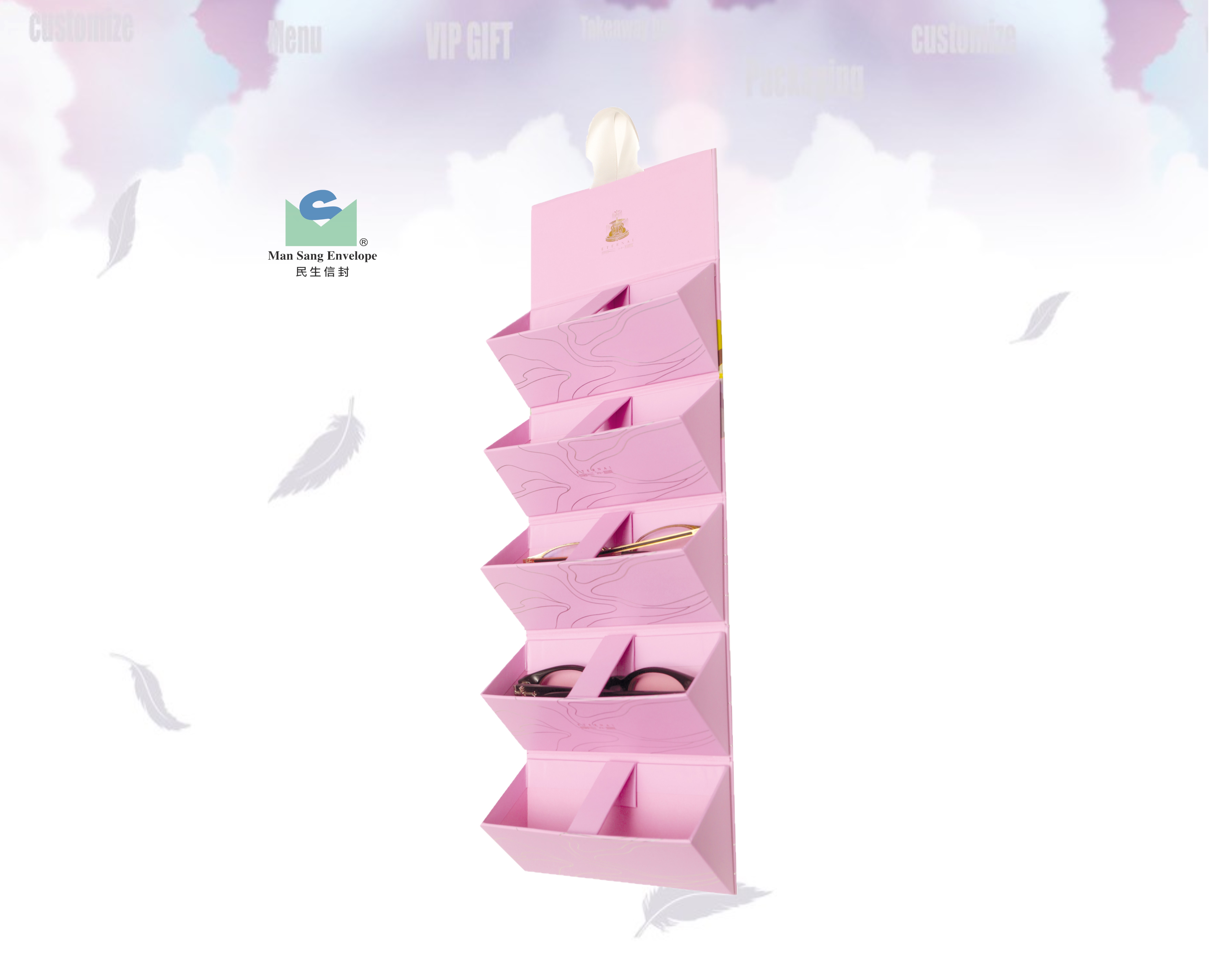 This is a wall hanging sunglass case with five inner gird. You can rolled into a 5-angle gift box.