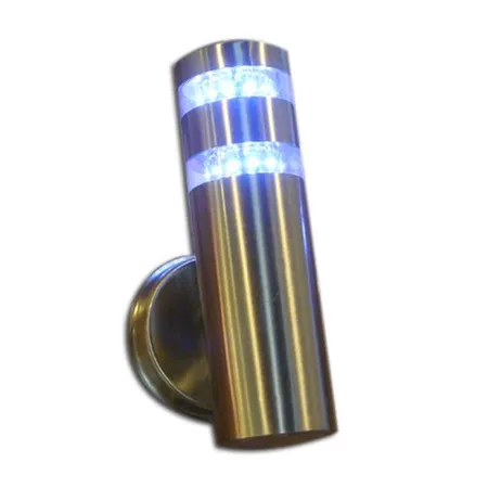 This is a LED wall lamp. The design of the LED wall lamp is modern. The LED wall lamp has a glossy metal casing.