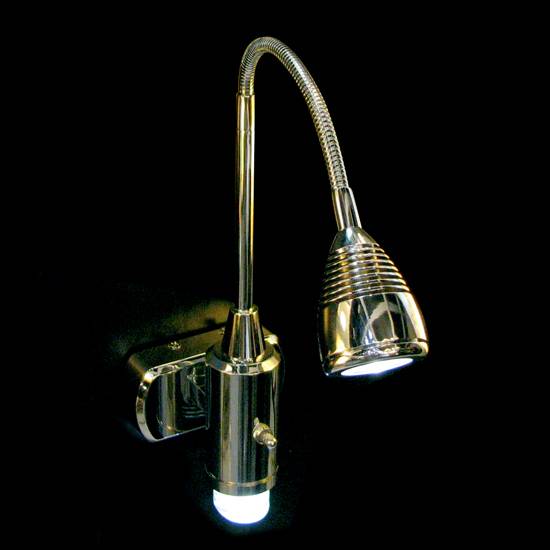 This is a wall lamp that is mounted on the wall. Its light source is LED, which is energy saving and effective light source. It has a metallic arm which is stretchable into any form. It is the best hotel equipment.