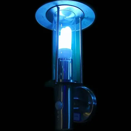 Demonstrated here is a wall lamp with a contemporary design. It boasts a stainless steel housing that can guard against dust, water and rust. The clear PC diffusers offer crisp illumination. Enhance your outdoor living space with this compact outdoor wall lamp.