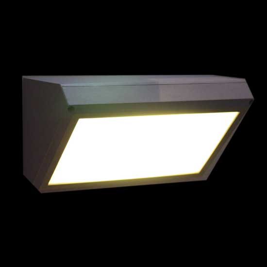 Featured is a wall-mounted lamp with a sloped down-facing diffuser made of tempered glass. It boasts a sturdy construction for reliable protection of the internal structure. This wall-mounted lamp is ideal for outdoor walls.