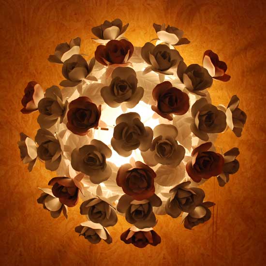 Displayed is a wall lamp in an elegant design. The lamp comes with a round-shaped body made up of rose blossoms, displaying a graceful style. This distinguished wall lamp simply adds a gorgeous touch to your space.