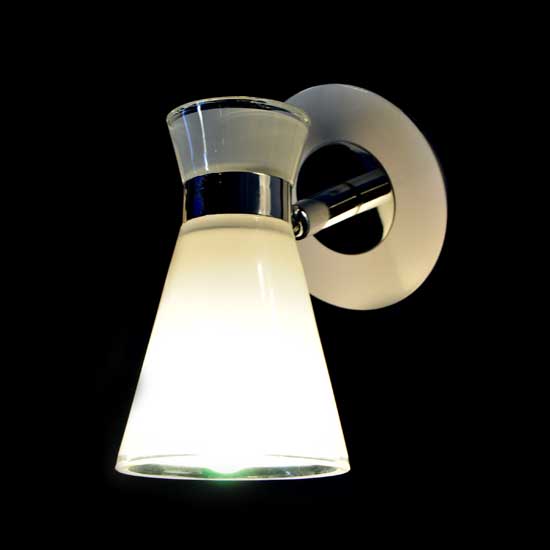 This wall lamp features a horn-like lampshade with a silvery hued band for uniqueness. The translucent glass lampshade allows soft and effective light transmittance. This appealing wall lamp spices up your indoor decoration immediately.