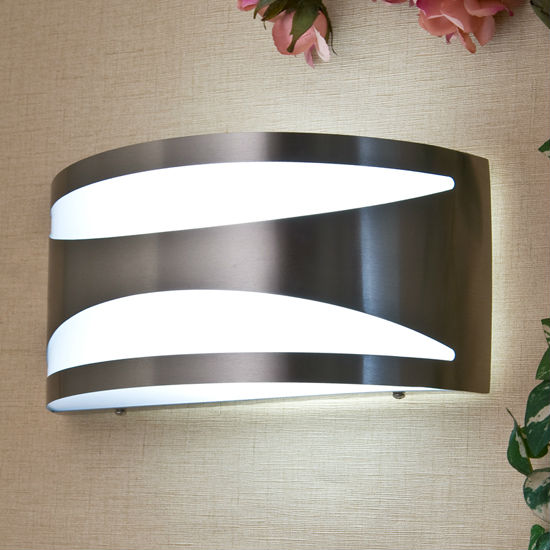 Pictured here is a wall mount lamp styled with a sleek half cylindrical design. It is a quality outdoor lighting with a long life span. For added style, the PC diffuser is fitted in stainless steel housing with curvy cut-out panels.