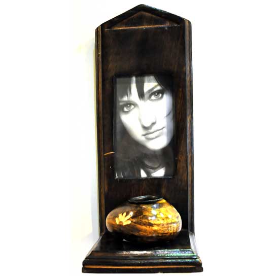 The wall-mount photo frame boasts a wooden tea light on the front for added ambiance. The photo window is rectangular in shape and is for portrait-oriented photos. Update your home decor with this wall-mount wooden photo frame.