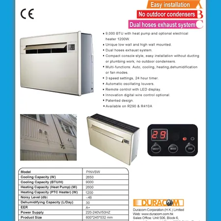 Compact console style, easy installation without ducting or plumbing work, no outdoor condensers