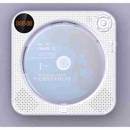 Wall-mounted design for space-savingLCD display with low power indicatorSupports CDs, CD-R/RW, MP3 CDs, WMA, and HDCD discsAudio formats supported: MP3, WMA, WAV, AACSpeaker output: 3W*2EQ function availableBluetooth speaker with version 5.0USB flash drive player capabilitySupports time display and alarm clockPowered by a 3.7V, 2000mAh battery with a charging time of 3-4 hoursIncludes AC adapter, remote control, USB cable, table holder, wall mountable holder, and user manual