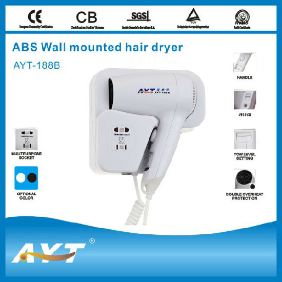 CE Wall mounted Hotel hair Dryer with shaver socket