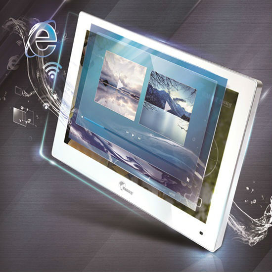 This wall mounted wireless television comes in an ivory-white arc-shaped design showcasing an essence of elegance. It is often installed in both outdoor and indoor settings with its waterproof engineering. With the latest Android operation platform, the WiFi television allows users to download and install applications on the device.