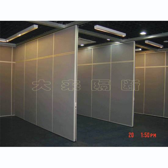 This wall partition features a minimalist design built with upper and lower panels. It slides along the overhead track system for use as a display panel or a sight divider. This wall partition is popular for fast setup in restaurants, function rooms and meeting rooms.