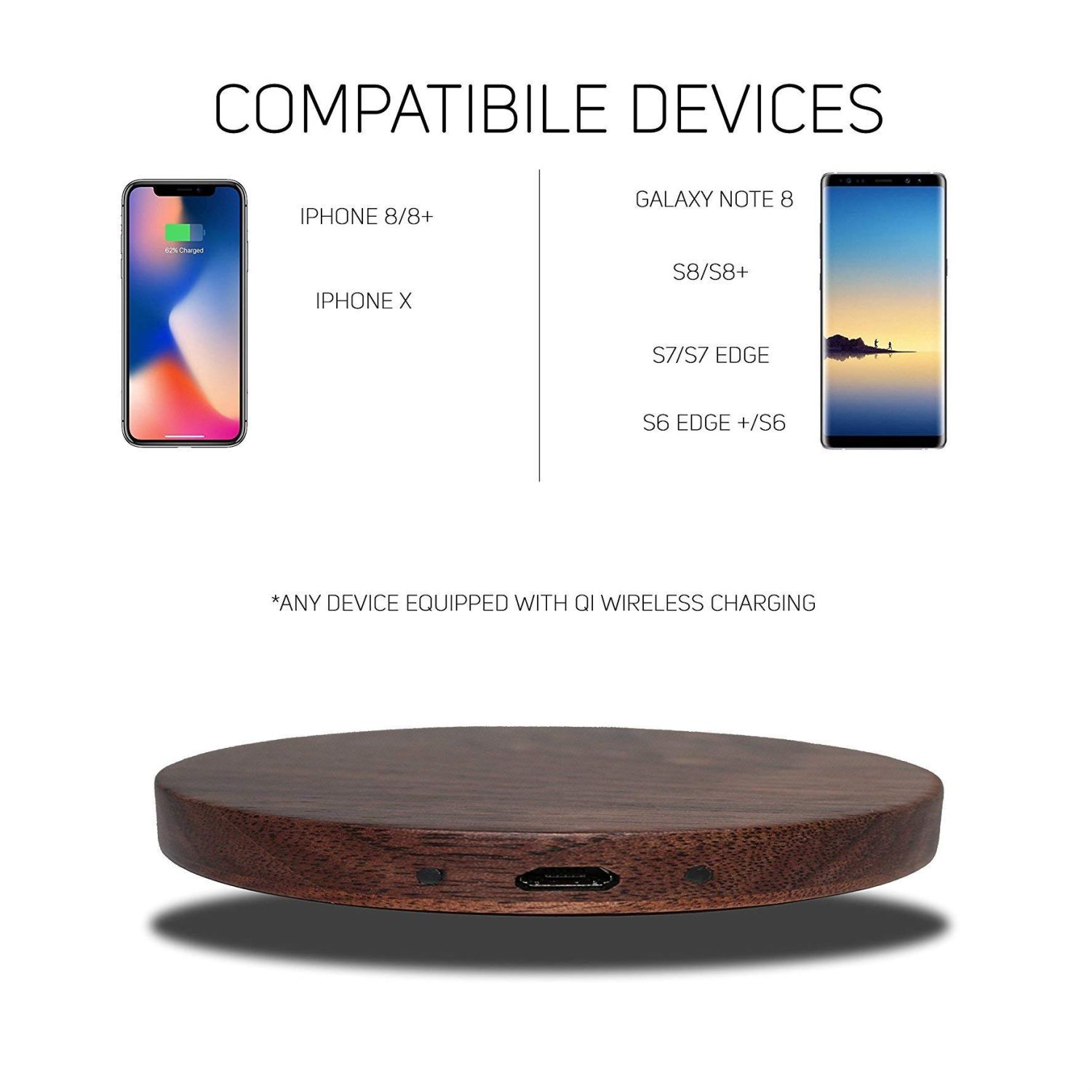 ELEGANT WOOD CONSTRUCTION: Each of our wooden wireless charger pad is handcrafted using the highest quality Walnut Wood. Thanks to its minimalistic yet elegant design it makes for a great artistic piece that seamlessly blends in with any wooden furniture to enhance the appeal of your surroundings. Our walnut brown wireless charging pad is lightweight yet durable enough to provide years of use as well as being portable.