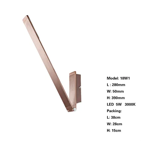 Wall Lamp Size: L.180*W.50*H.480MM Pack: Brown Box CUFT: 520X225X275MM/6, cuft1.14 (carton) 105X85X505MM (inner box) Bulb:LED 6W, 400LM, 3000K Material:Aluminium Finish: Anodized, brushed , 3 choice 1. blue grey, 2. black, 3.rose gold Remark: