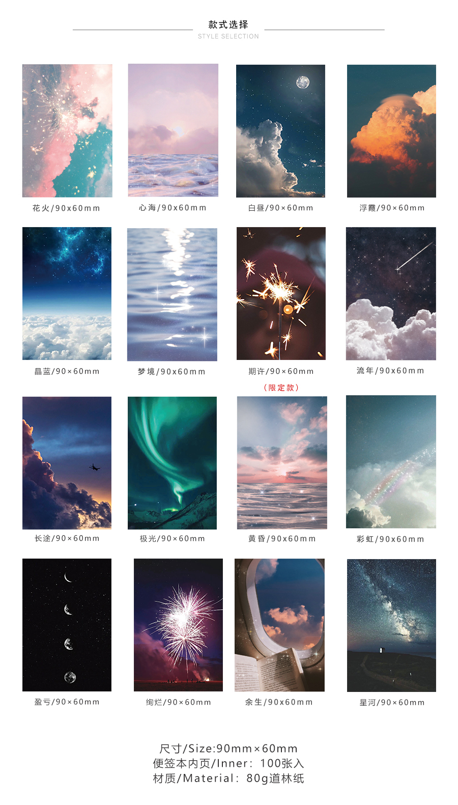 Wandering Star Notebook tagboard jotter pocketbook 100 Sheets into Salt Department Hand Account Landscape Painting Ins Message Notes Decorative Note Paper