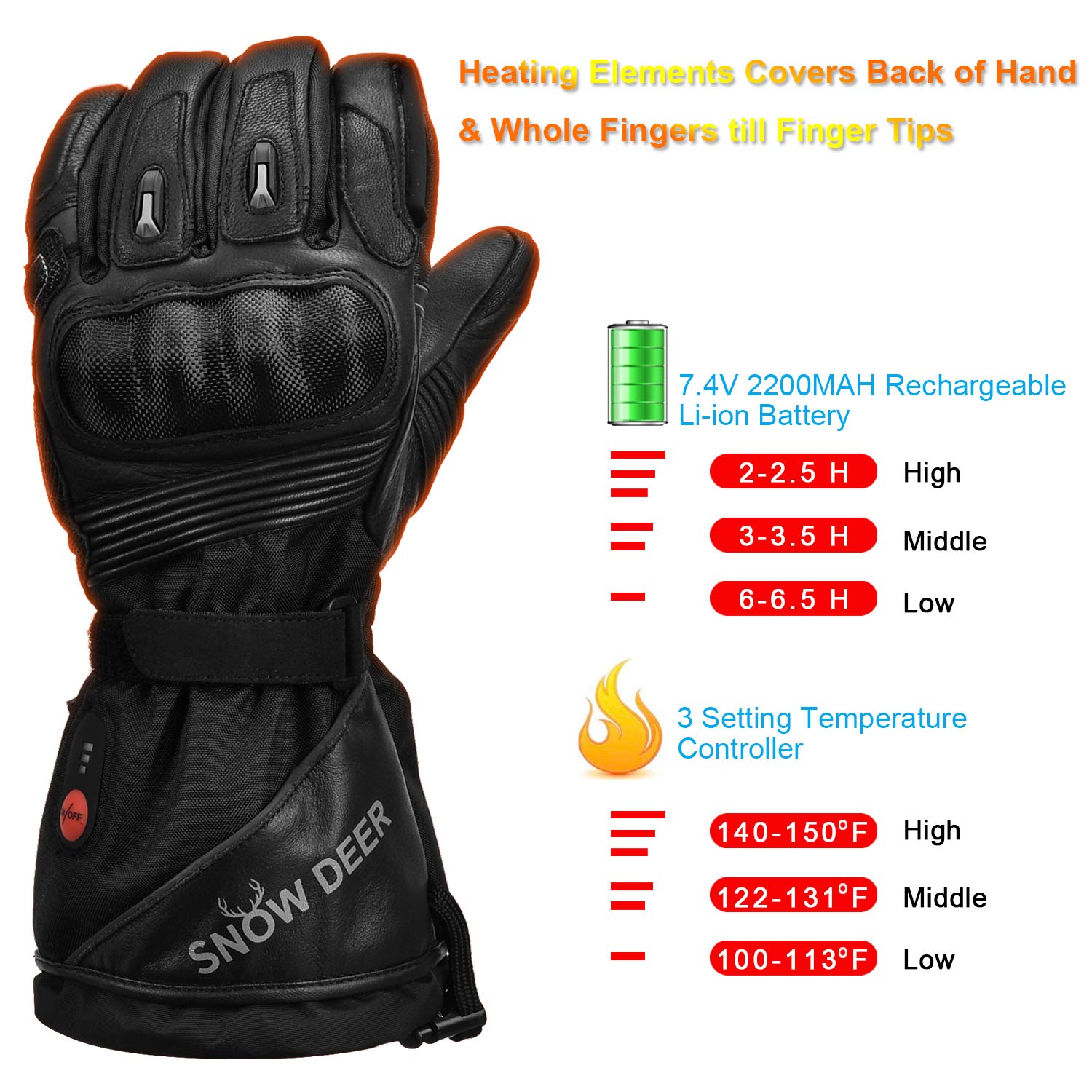 Level 3: 3 LEDs On (100% Power, 55°C* 65°C, Heating Time 2-3 Hours)