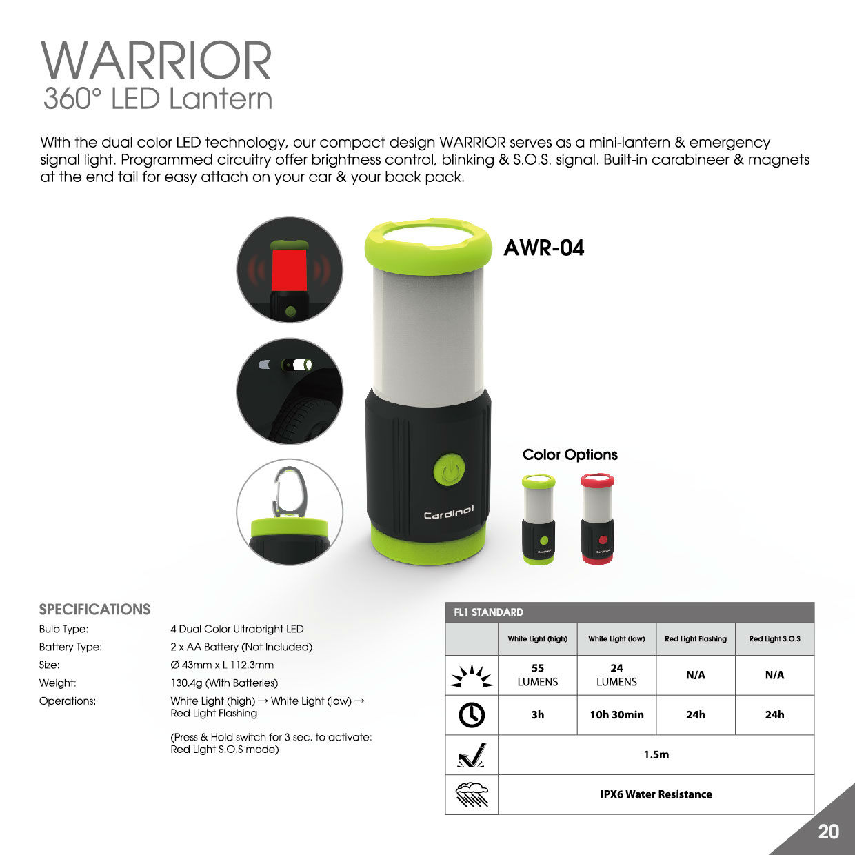 With the dual color LED technology, our compact design WARRIOR serves as a mini-lantern & emergency signal light. Programmed circuitry offer brightness control, blinking & S.O.S. signal. Built-in carabineer & magnets at the end tail for easy attach on your car & your back pack.